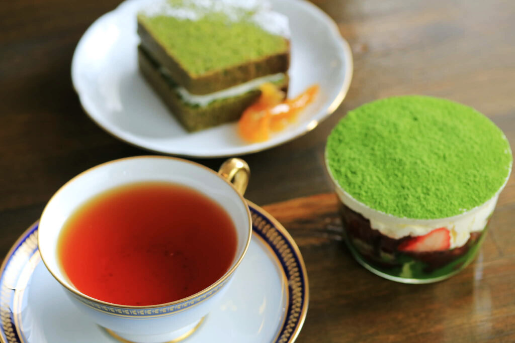 店主の秘蔵紅茶を3種(詳しい内容は参加者だけの秘密!)、フルサイズスイーツ2種(つぼみのいちご抹茶ティラミス・RONRON抹茶とゆずのパウンドケーキ)、そしてお土産として和紅茶とRONRONさん特注バーチディダーマと盛り盛りの紅茶会でした。